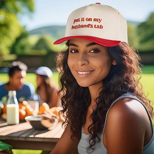 Two Tone Cap - Put It on My Husbands Tab - Beige/Red