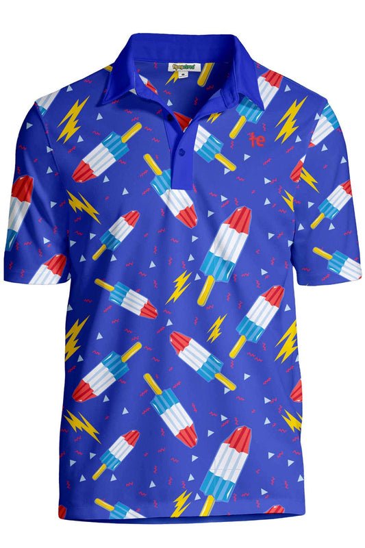 Grand Finale Men's Golf Shirt - Blue Rocket Pop Golf Polo