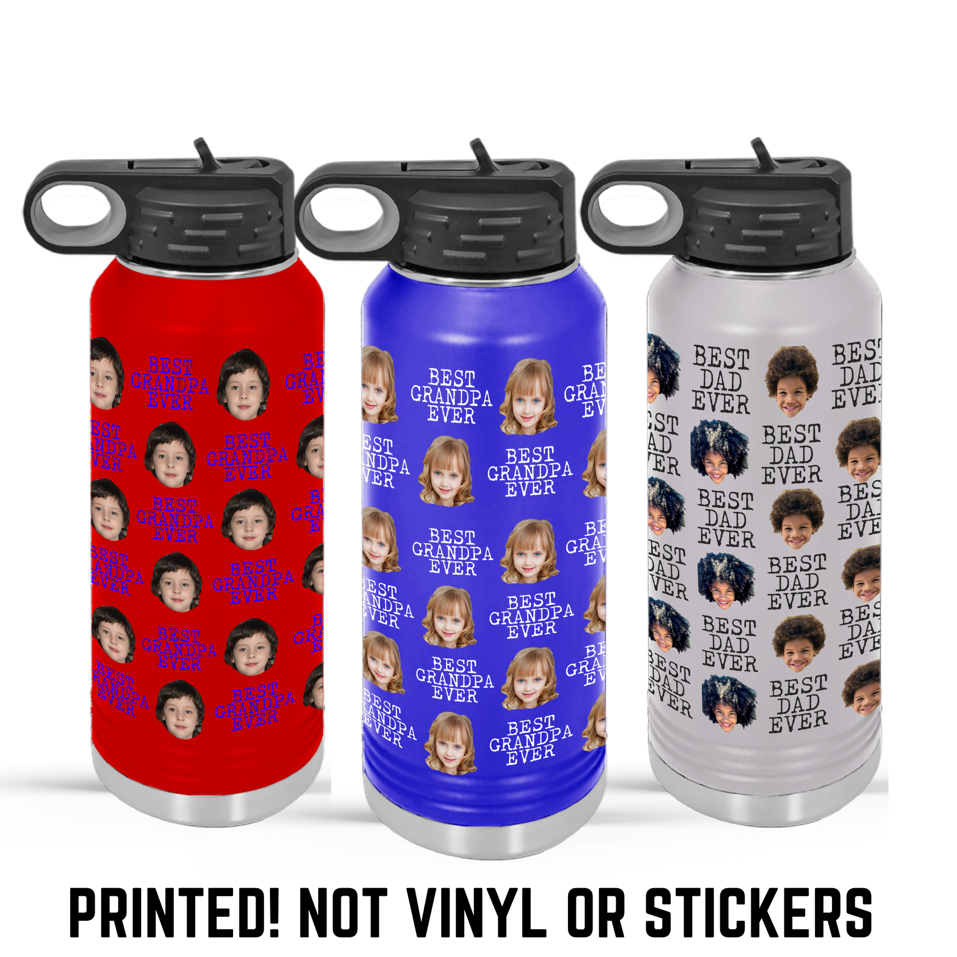 Tumblers are printed with photo/s and custom wording with permanent ink.