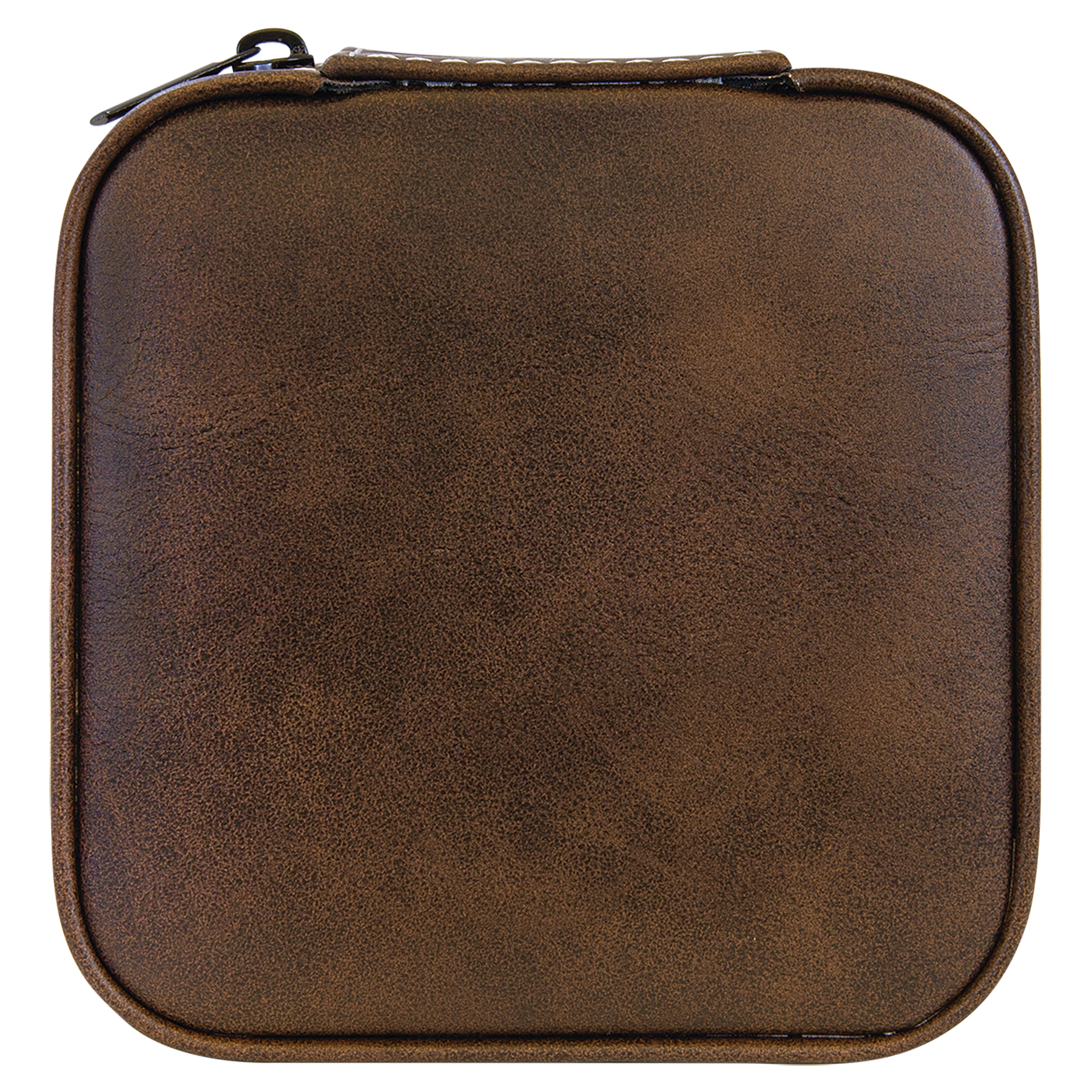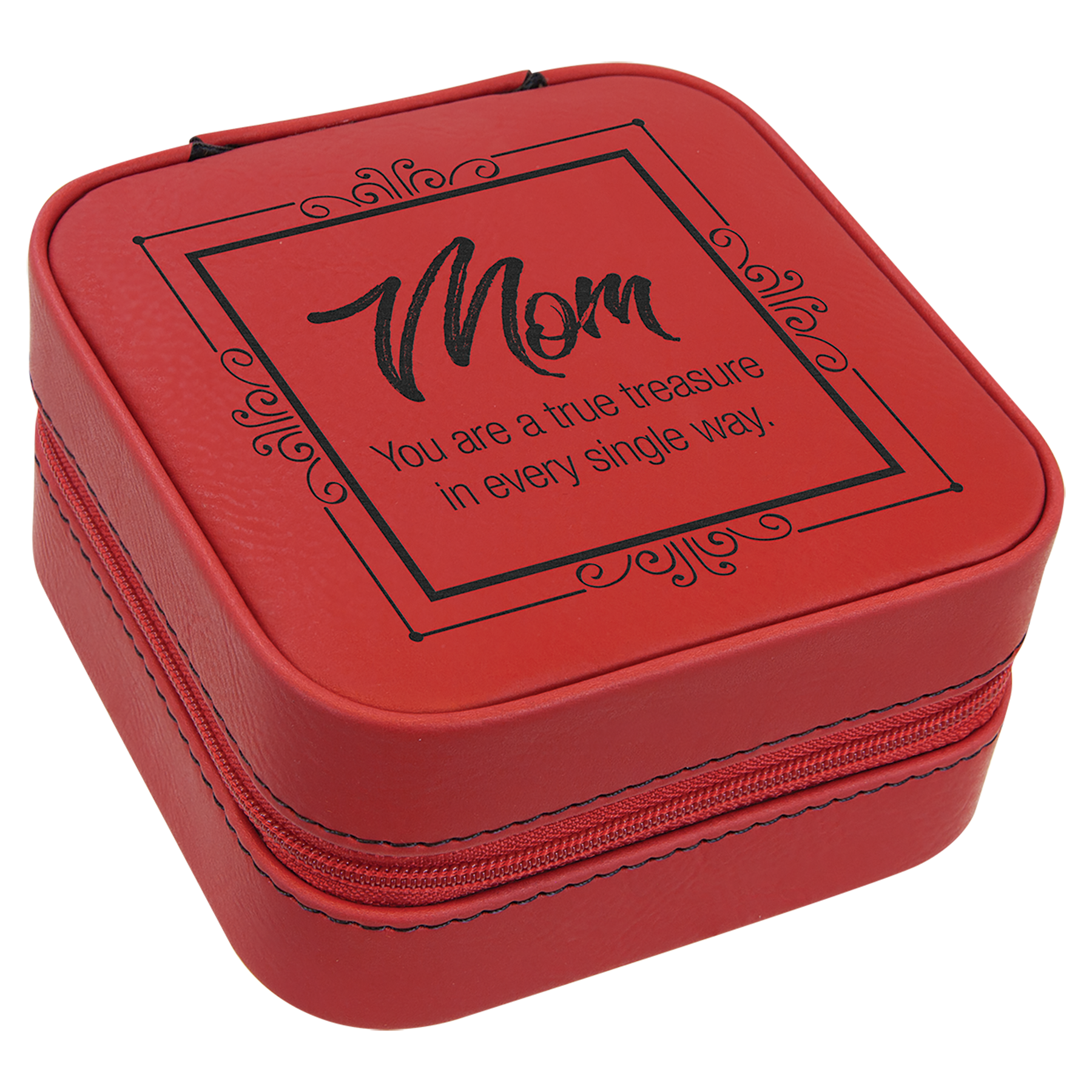 Laserable Leatherette travel jewelry boxes are compact for your suitcase orpurse. Inside of box as compartments for chains, rings, earings, or whatever jewelry you want to bring along. Personalize front, back, or both and they make a perfect custom gift for any occasion. Great for bridesmaid gifts!