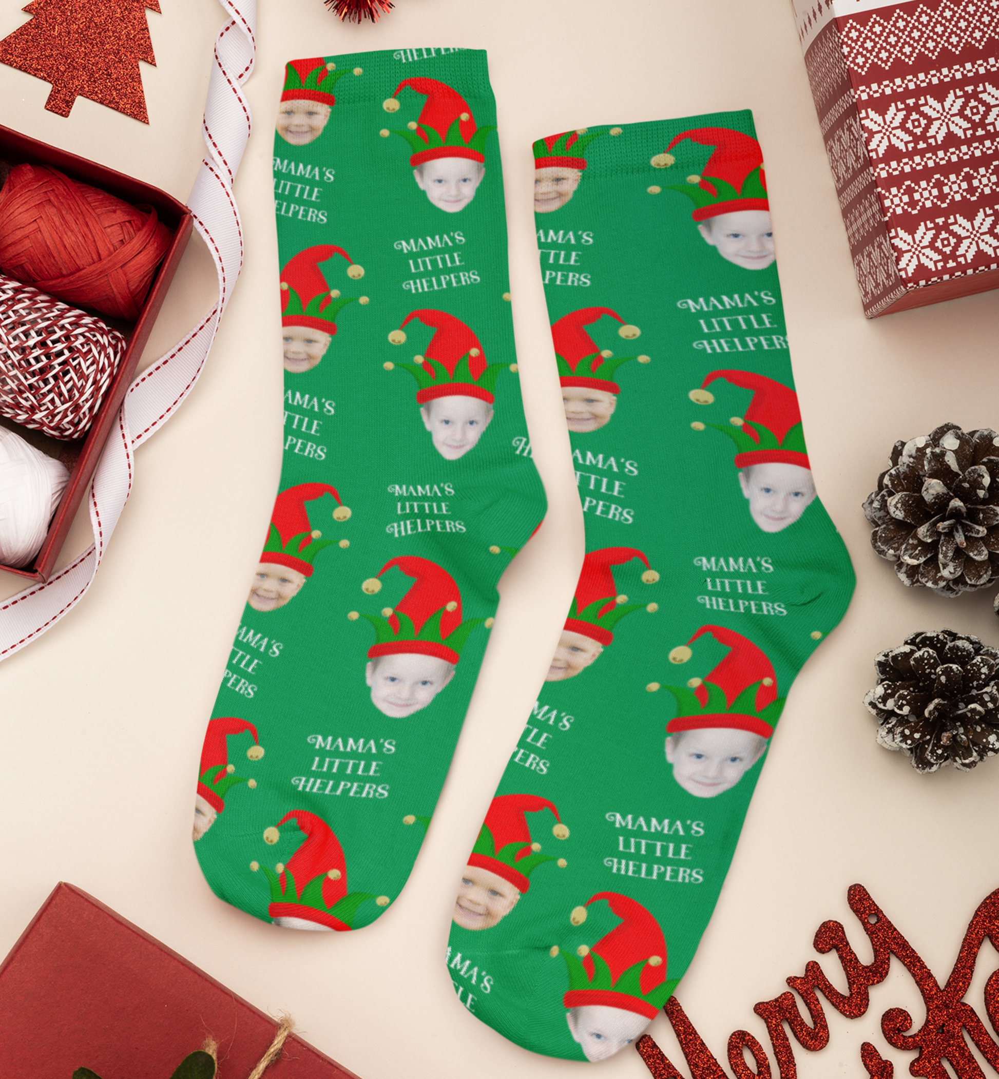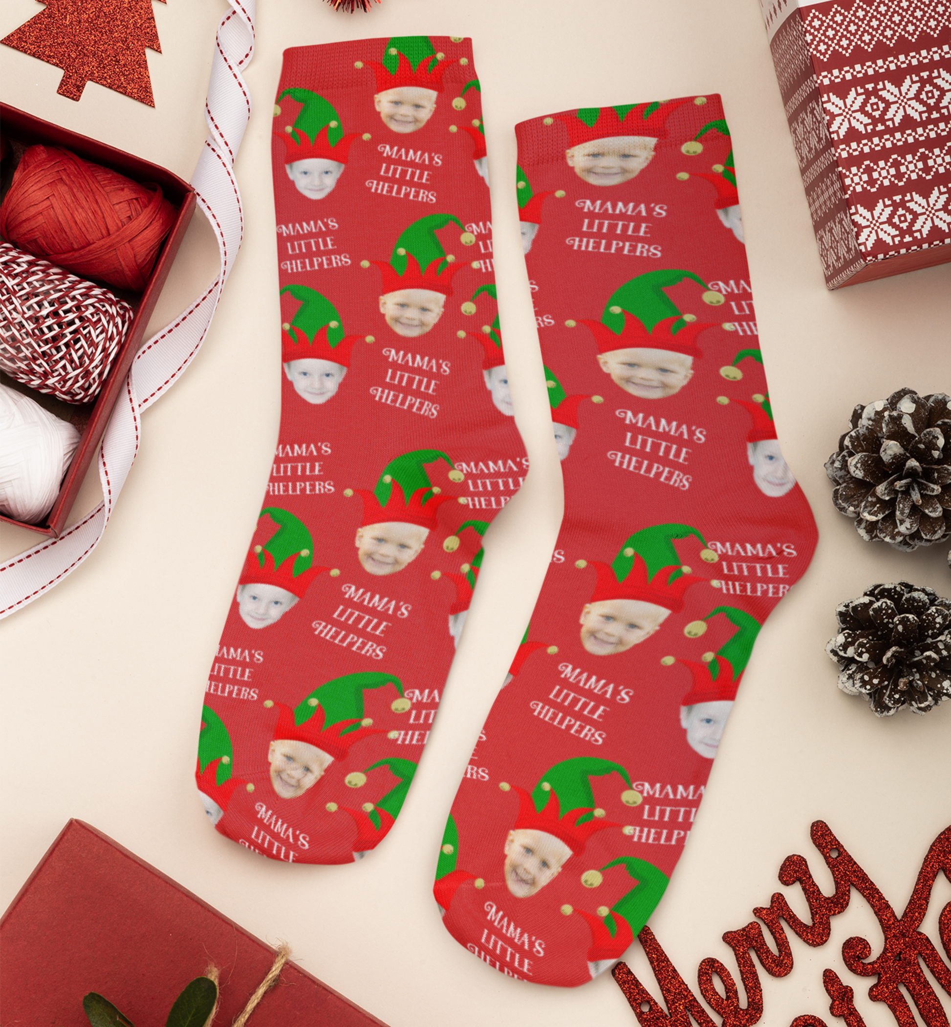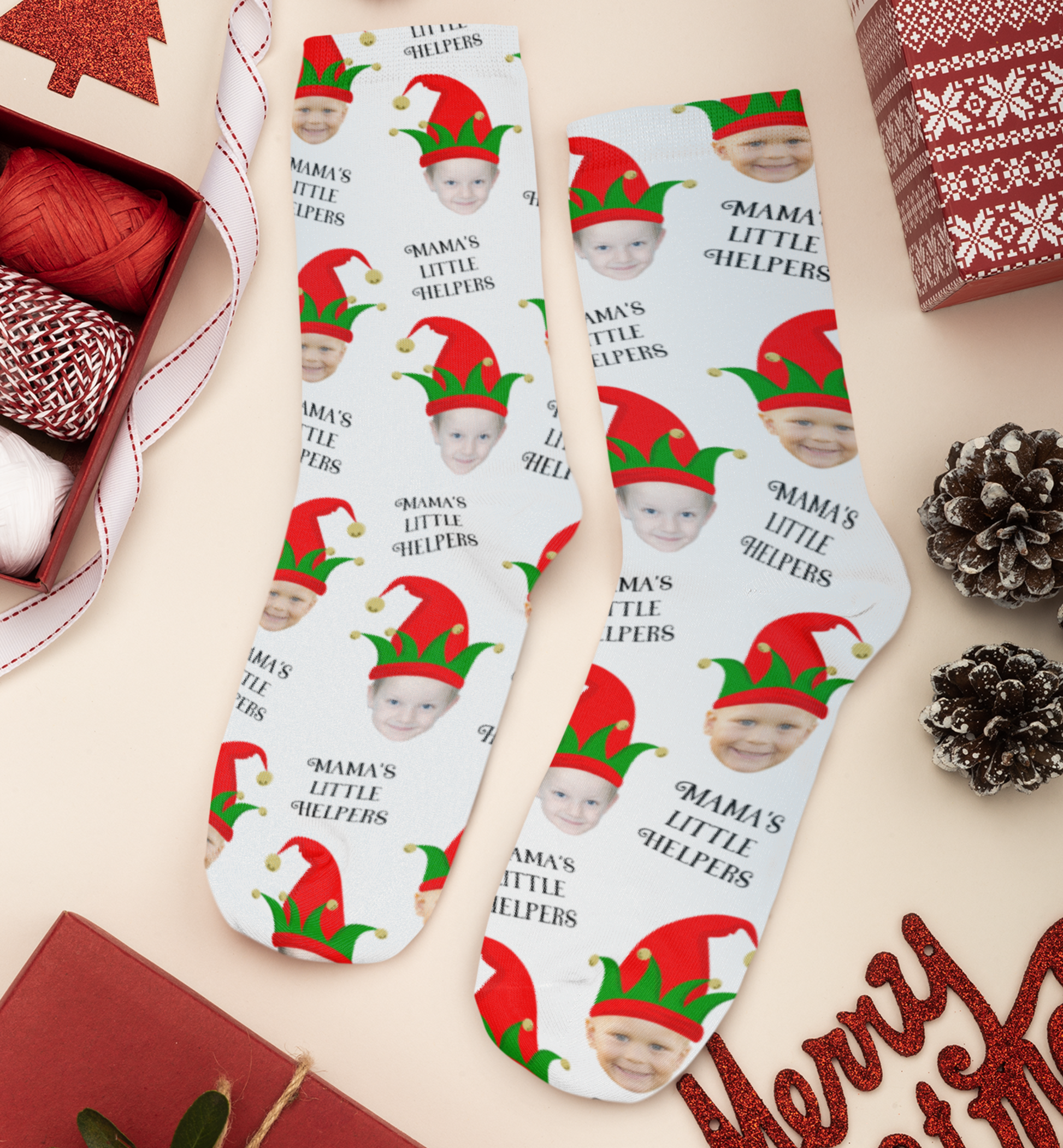 Santa Elves have been good all year, put them on a pair of socks for Mom, Mama, or Mommy.