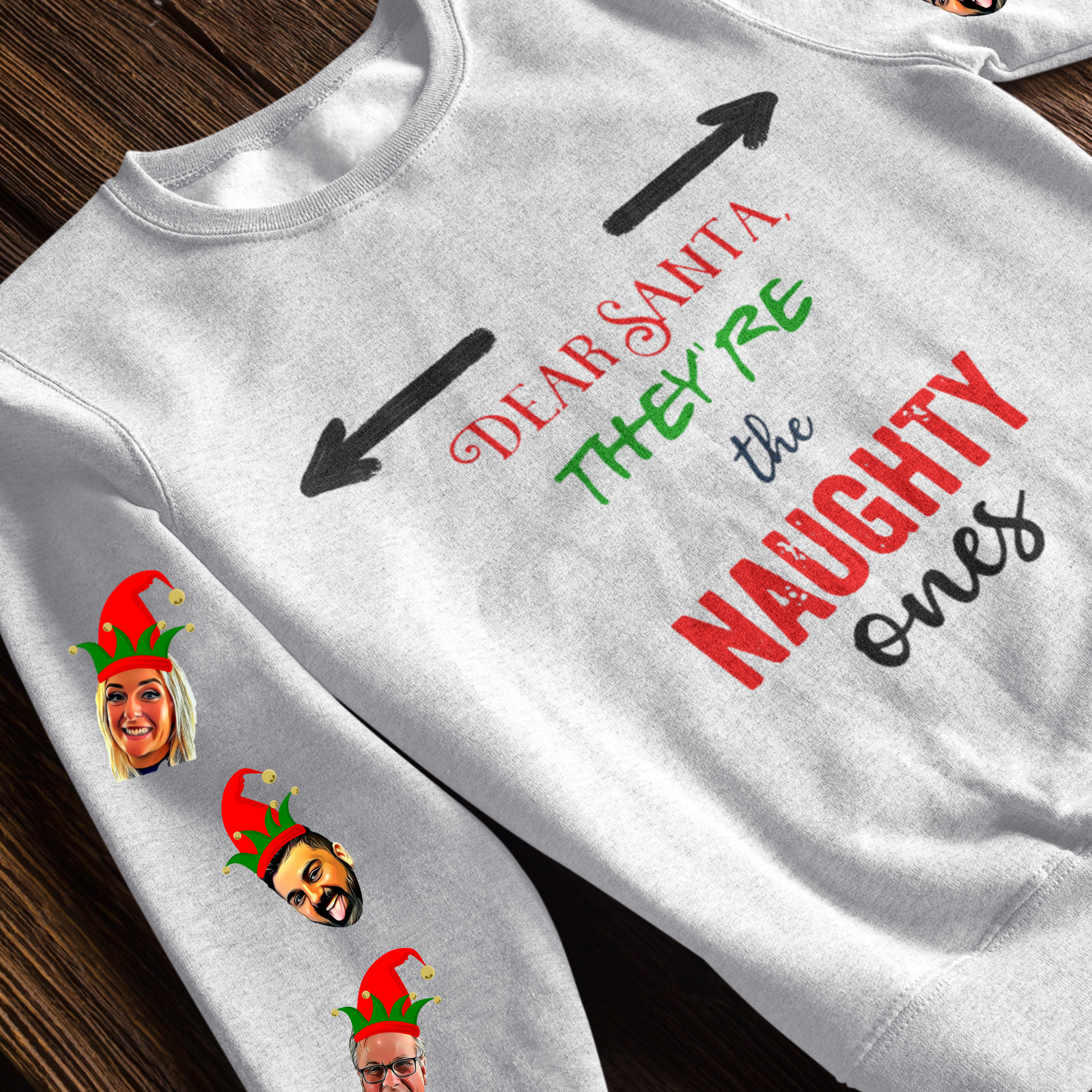 1. Place order with size and color. Pick the number of photos you'd like included on the sweater! If you choose less than 6 faces, we will repeat some of the faces down the sleeve.
