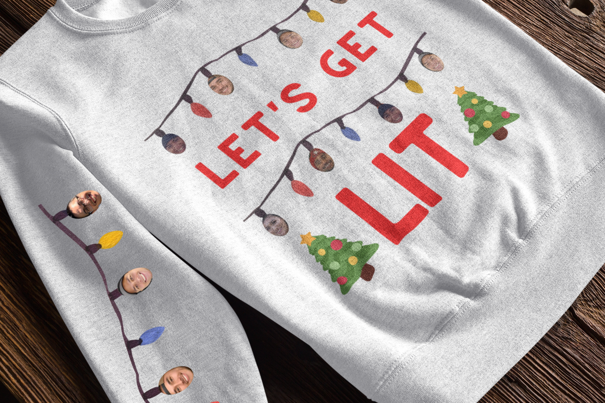 1. Place order with size and color. Pick the number of unique faces you'd like included on the sweater!