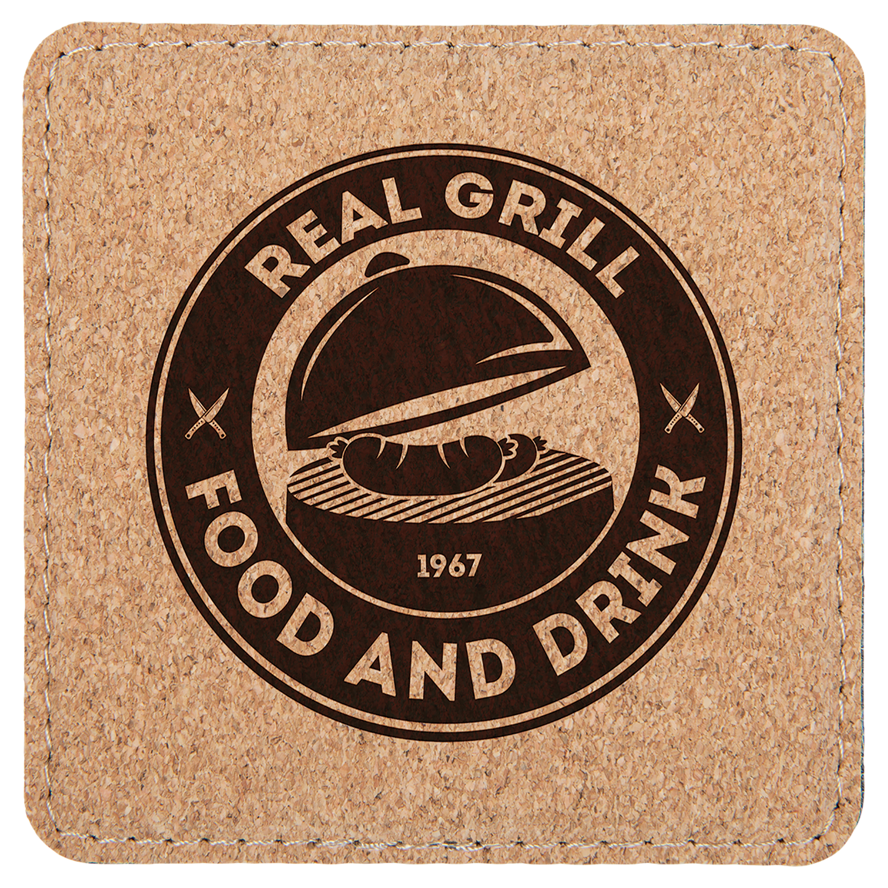Cork coasters are a great gift or incentive. Because cork is made from only the bark of the tree it is one of the most highly renewable resouces available and offers both beauty and durability. Topstiched all around and 1/8" thick, the inner foam absorbs moisture, allowing the surface to retain its original beauty. Laser engrave them to black for a stunning contrast.