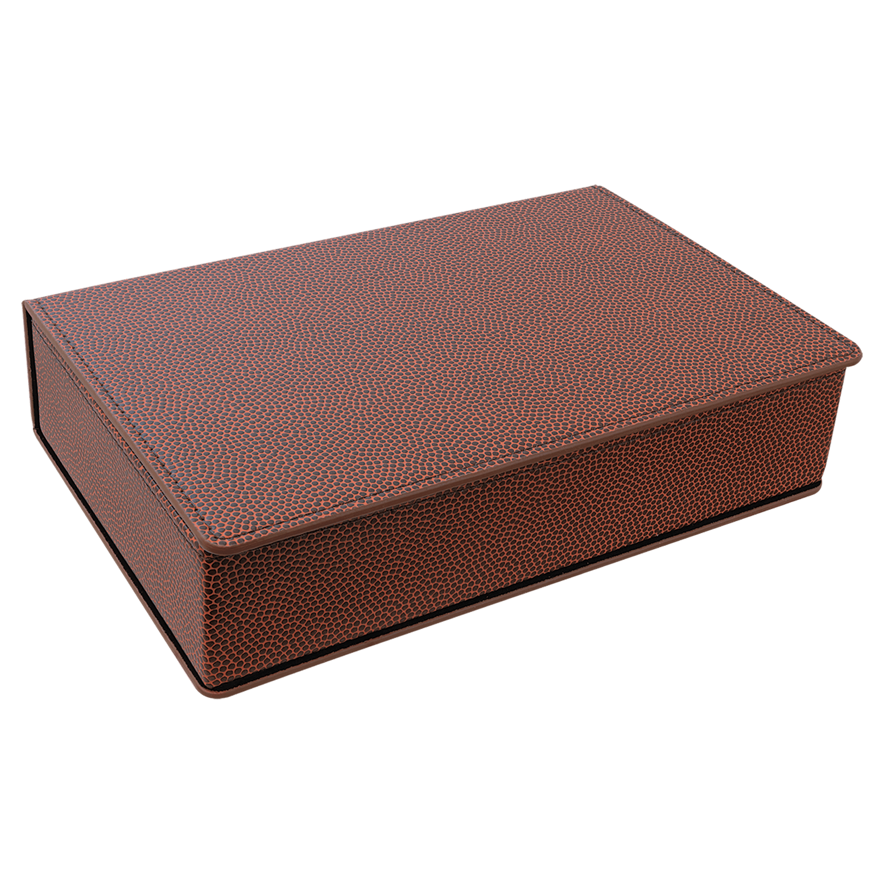 Laserable Leatherette offers the look and feel of genuine leather at a fraction of the price. The box and flask in this set are wrapped in a richly textured material designed to replicate a regulation football. Personalized, this set makes a perfect promotional item for football leagues, or sports bars, or gift for any football fan! Laserable leatherette is very durable and can be personalized through laser engraving for a sharp contrast. Also works great for UV printing!
