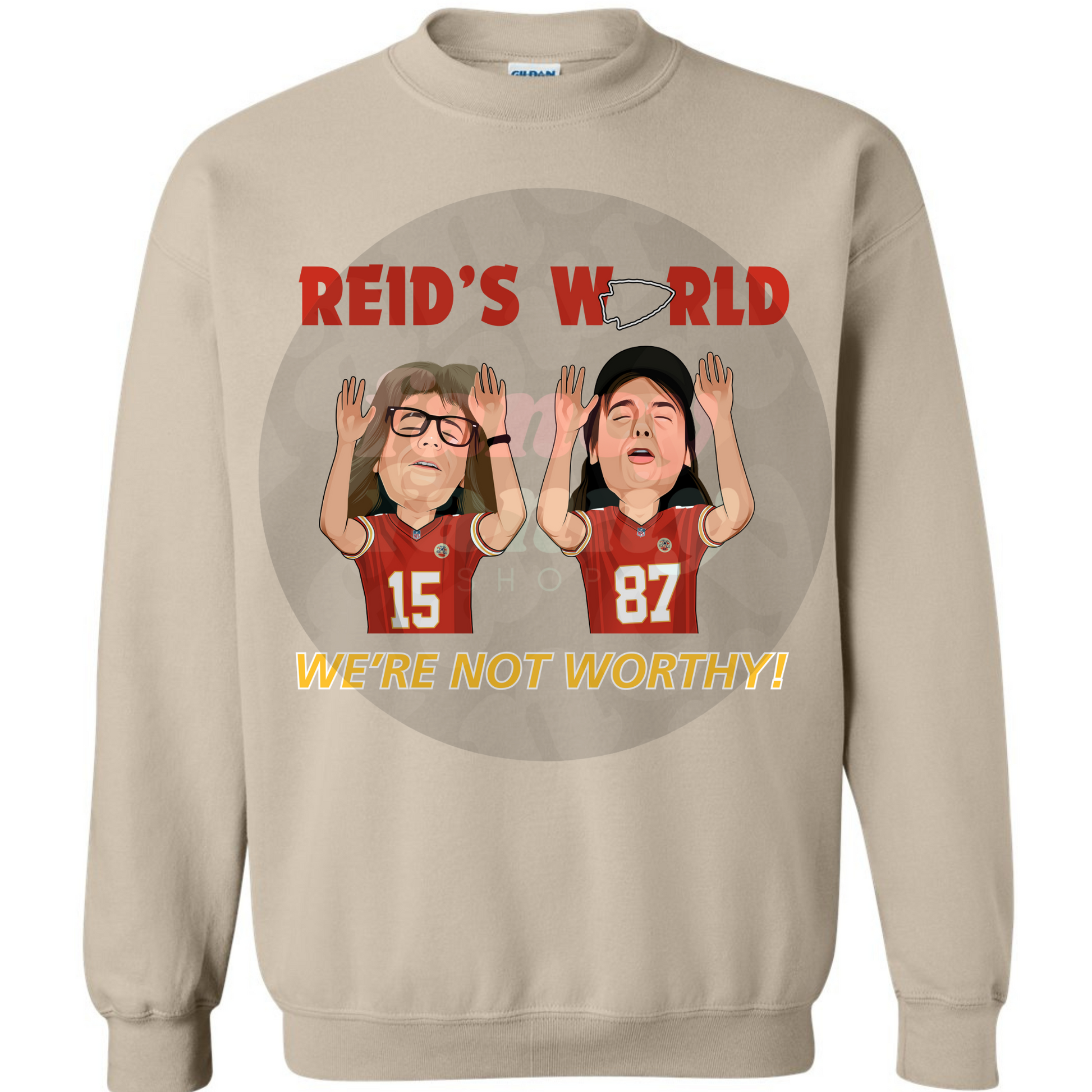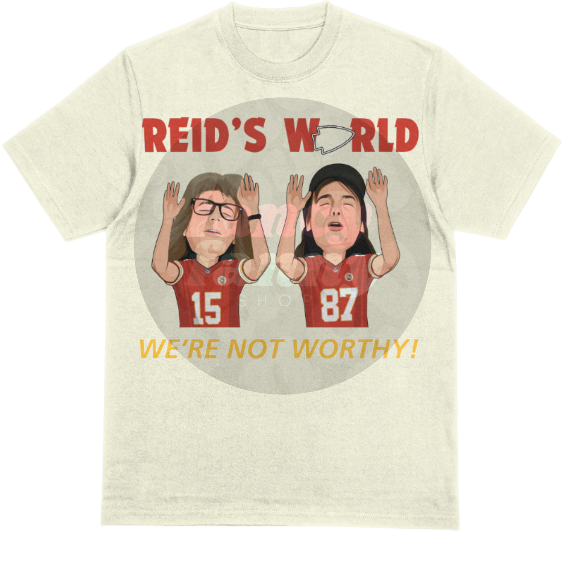 - Bold, Kansas City football-inspired design with "We’re Not Worthy" text.