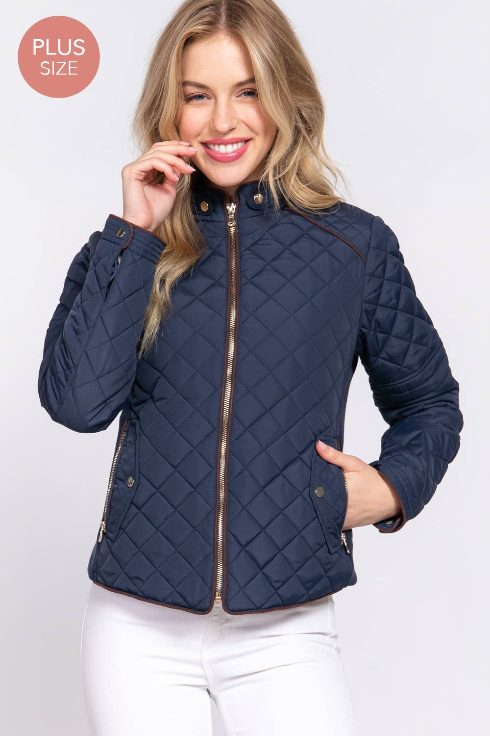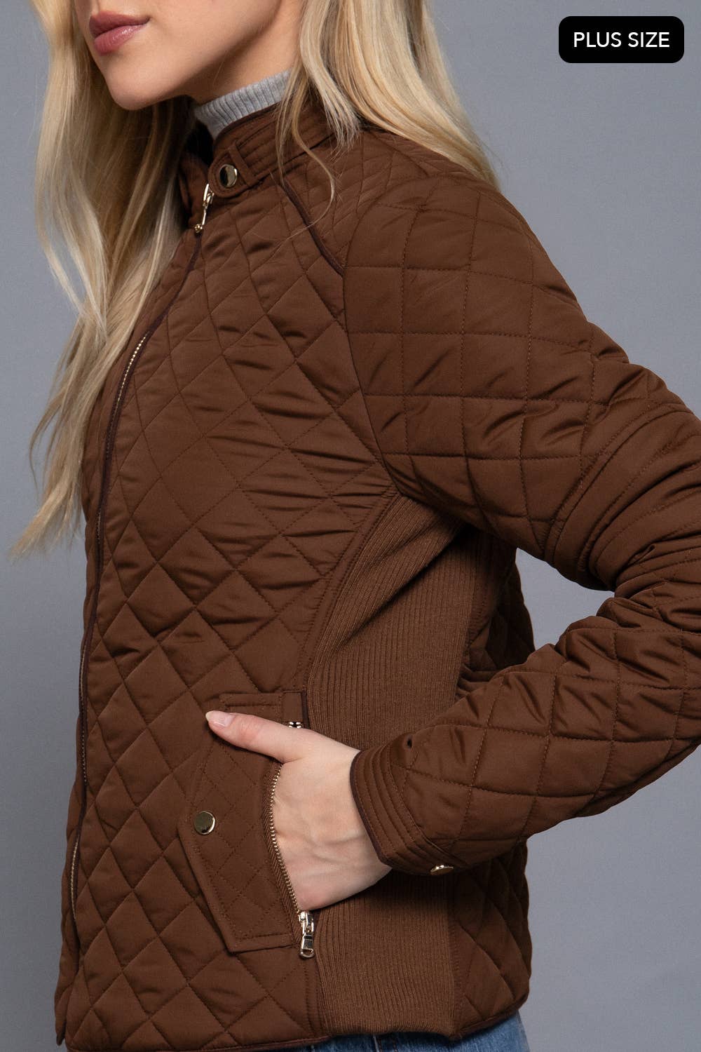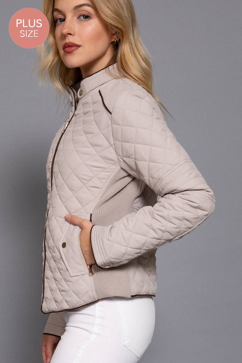 [PLUS SIZE] Suede Piping Detail Rib Quilted Padding Jacket