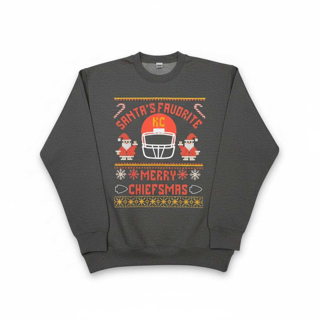 "Join the winning team this holiday season with Santa's Favorite - Naughty List Kansas City chiefs sweatshirt. Featuring all 32 teams on the back, this super soft sweatshirt is sure to keep you cozy as you root for your favorite chiefs. Perfect for anyone who doesn't take themselves too seriously (ho, ho, ho)!"