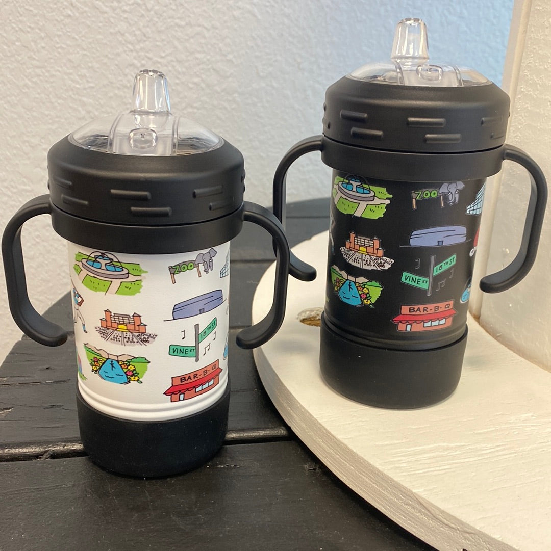 10oz sippy cup with removable handles! Keeps water cold for 24 hours.