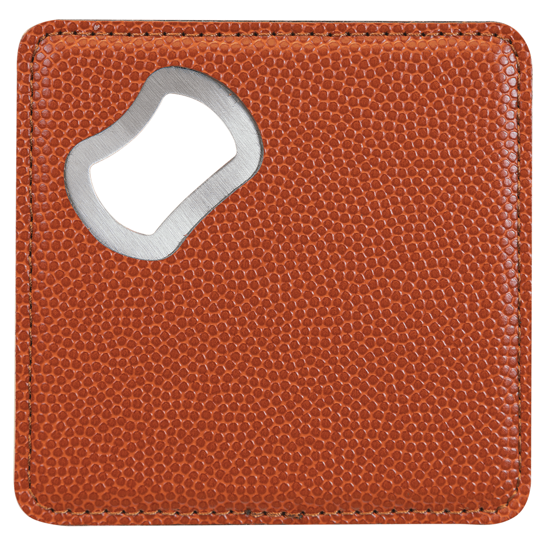 This is a neat little "two for one"! Wrapped in the beauty and durability of leatherette, this 4" coaster has its own built-in bottle opener! Perfect for a man cave, or a wedding or house warming gift, a souvenir of a special event, or a promotional item to get your business or organizations name out in the public eye. Unique and available in several gorgeous colors it can be personalized by laser engraving to a bold contrast. Also great for UV print!