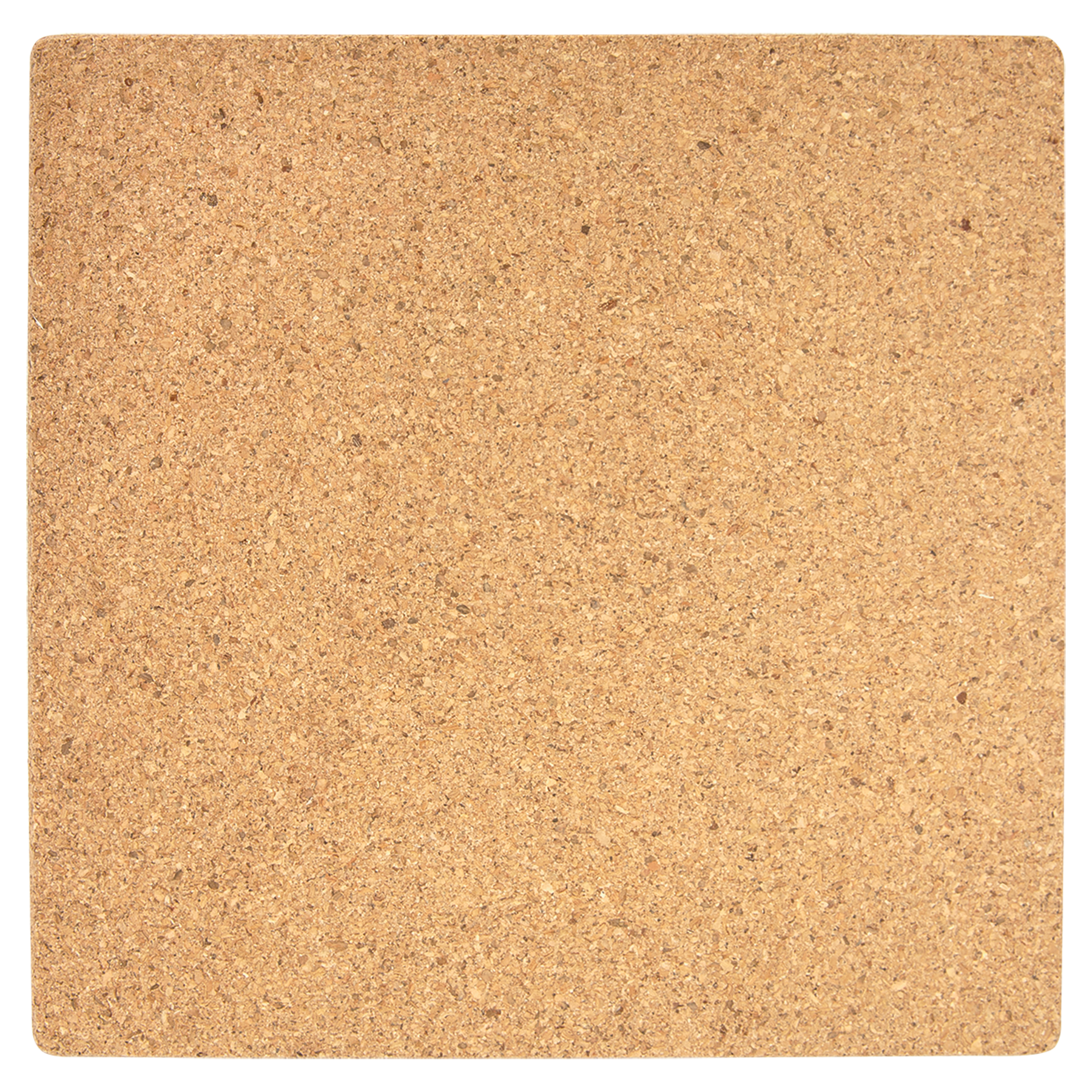 This 7 3/4" x 7 3/4" natural cork trivet will protect any surface with style. Cork is an easy product to personalize, offering a dark laser mark and will make a classy addition to any kitchen.