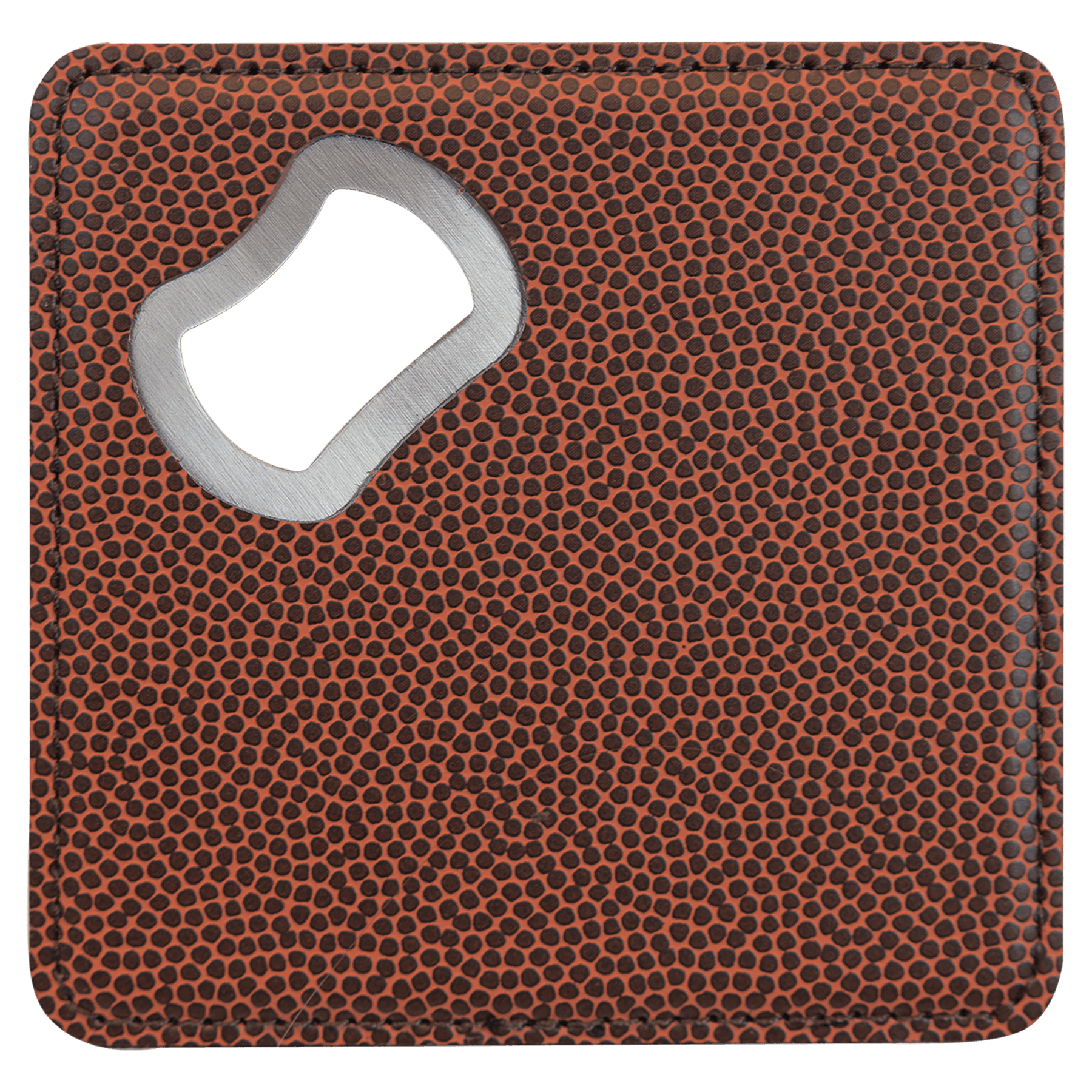 This is a neat little "two for one"! Wrapped in the beauty and durability of leatherette, this 4" coaster has its own built-in bottle opener! Perfect for a man cave, or a wedding or house warming gift, a souvenir of a special event, or a promotional item to get your business or organizations name out in the public eye. Unique and available in several gorgeous colors it can be personalized by laser engraving to a bold contrast. Also great for UV print.