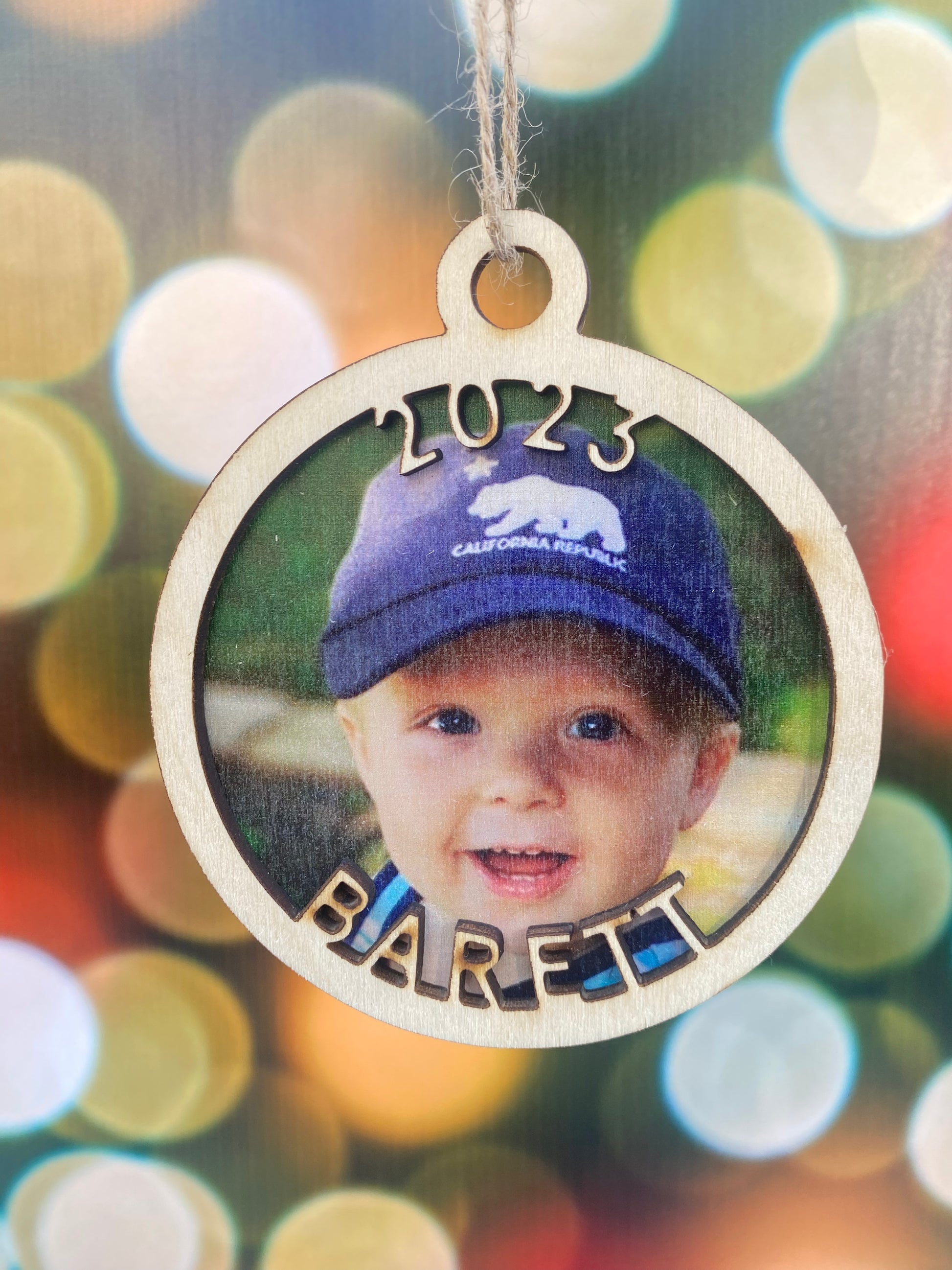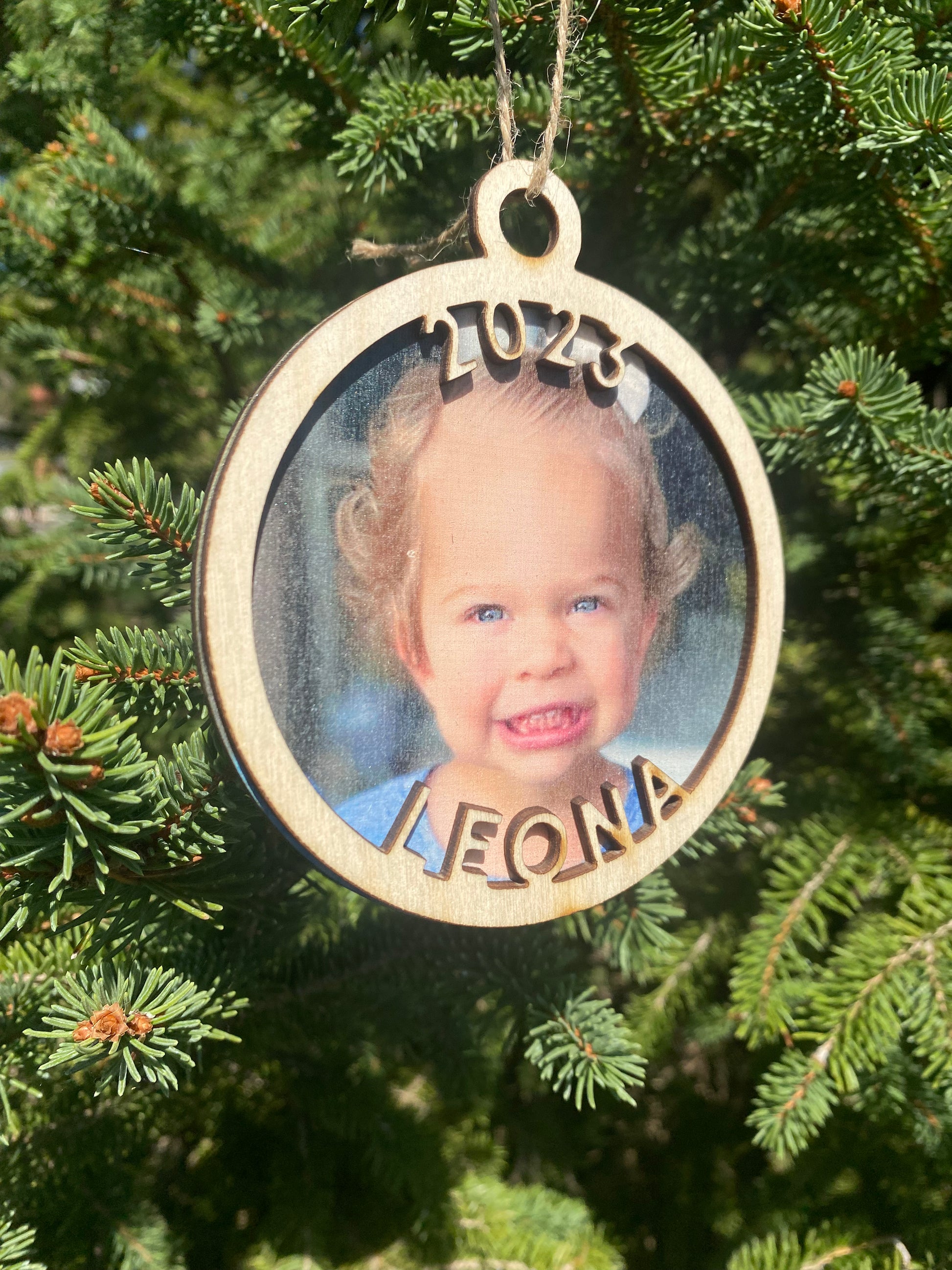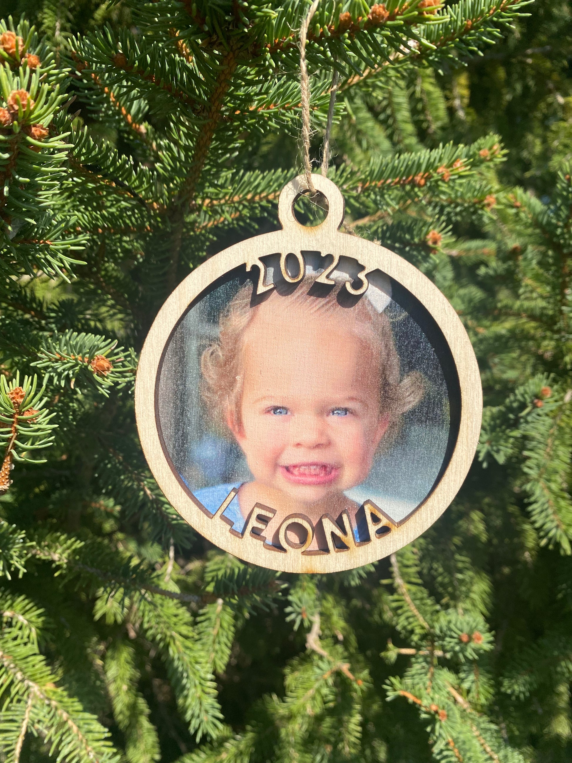 Illuminate Your Holidays with the 3.5-inch Personalized Wood Photo Ornament! 🌲📷✨