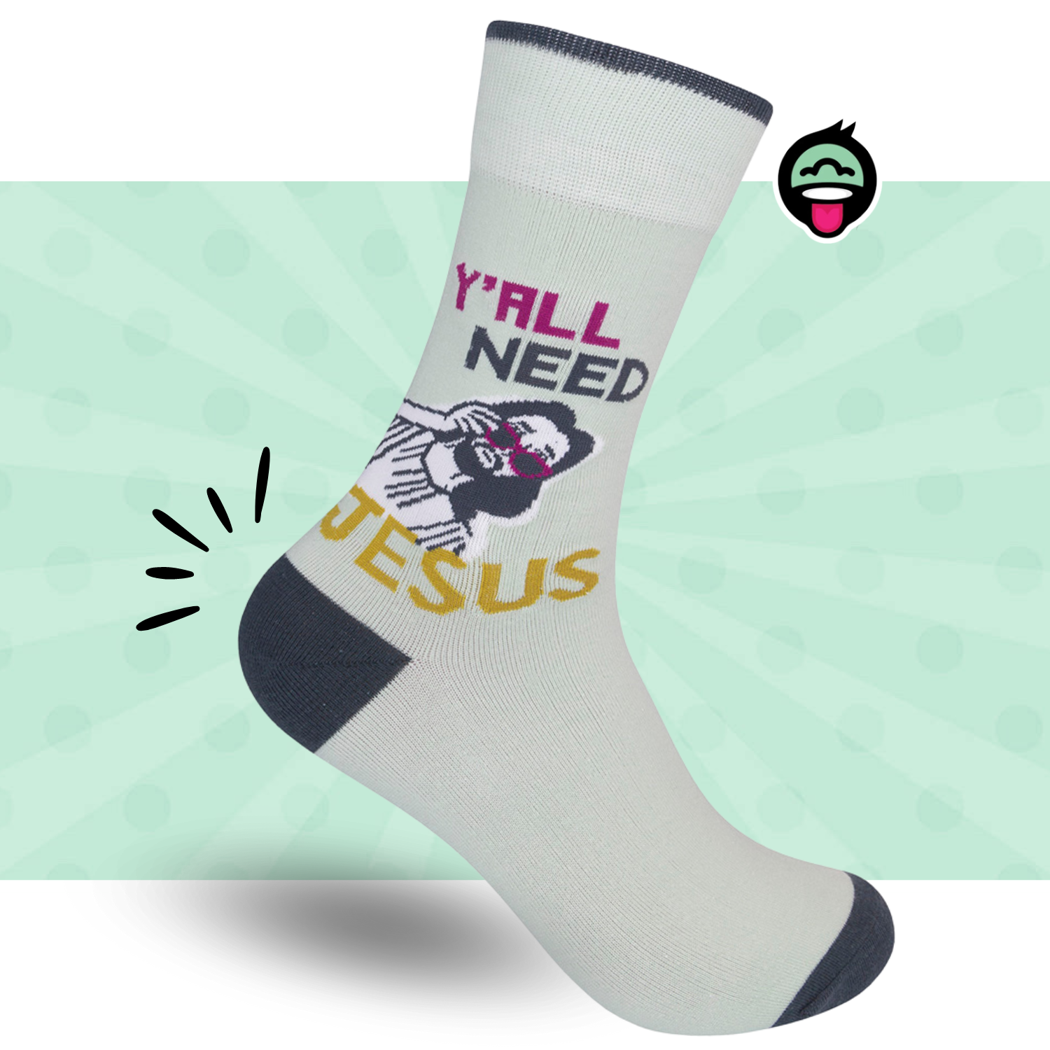 For those moments when prayer might not cut it but a little side-eye from the Savior just might these socks deliver holy humor in the most unexpected way. It doesn’t matter if you’re rolling your eyes in a meeting, keeping the peace at family dinner, or just trying to stay saved while dealing with questionable behavior, these socks say what you're really thinking: Y’all need Jesus.